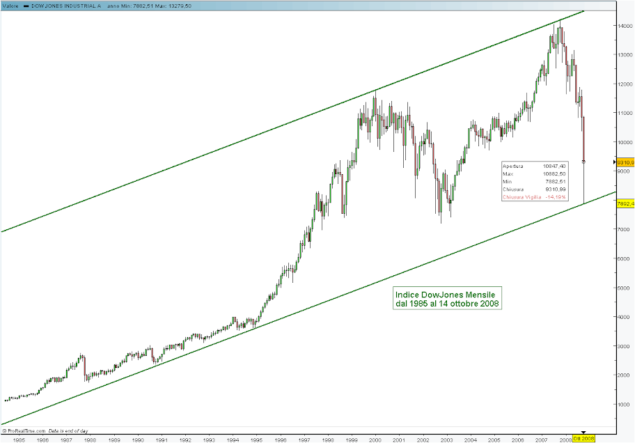 Mentre, come lo abbiamo visto in precedenza, i ribassisti fanno a gara per proporre conteggi di Elliott sempre più catastrofici, i rialzisti, per conto loro, si aggrappano ad ipotetici canali ascendenti di lunghissimo periodo... :
